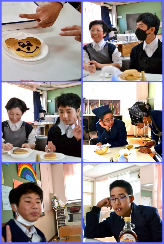 1組独自の「3年生を送る会」が今日行われました。1年生の二人の司会進行で始まり、各学年ごとに4時間目に作ったホットケーキを3年生のNさんに、味のみならずトッピングのデザインなども加味してどの学年のものが素晴らしかったかを決めてもらいました。その後、それぞれ思い思いの味付けをしてホットケーキを食べました。Nさんからの出し物もあり、とても楽しいひと時を過ごすことができました。