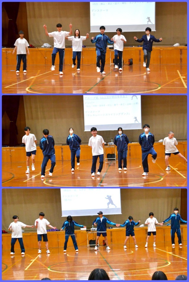 昨日の1年生に続いて、今日は2年生のダンス発表会が2時間目に実施されました。少し照れがあるのか、はじけ切れない部分も感じられましたが、これが思春期真っ只中の2年生なのかなあと逆に微笑ましくなりました。限られた時間の中で練習して、学年全員の前で披露するのは大変だったと思いますが、恥じらいも含めて輝いていましたよ。