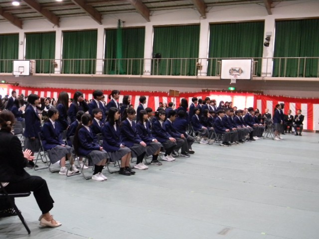 令和8年度入学式を行いました。93名の新入生を迎えて、3学年がそろいました。桜もなんとか持ちこたえ、天気の良い一日でした。