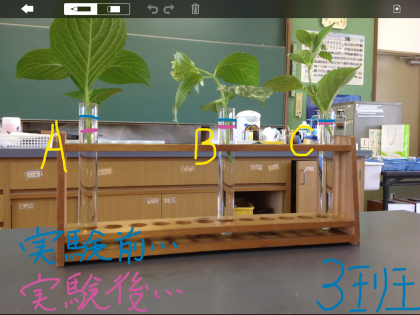 授業では20分ほど時間おいて水がどれだけ減るかを調べました。