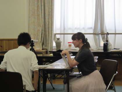 また,もう一つのプログラムであるモード先生とのパフォーマンステストも覗いてみました。とても自然なコミュニーケーションが取れていて,「なかなかやるな!3年生」と思わず感じさせる授業場面でした。