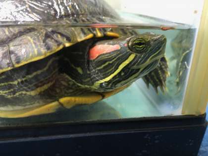 学校周辺の用水路で30cm以上のミシシッピアカミミガメを発見しました。