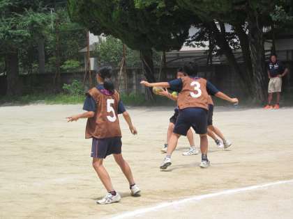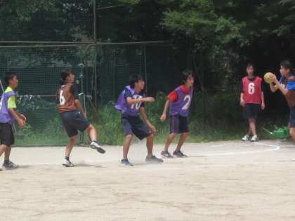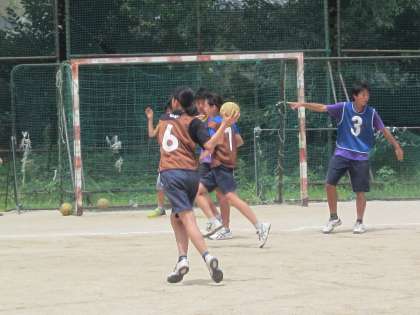 ハンドボールコートでは,男女共に大きなかけ声を挙げながら,走り回るハンドボール部が頑張っています。