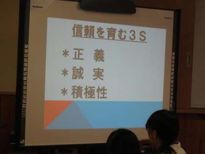 執行委員,各クラスの学級委員が集まって,アイスブレーキングのクイズ,絵しりとりで各グループの交流を深めた後,校長先生からリーダーについての講話を聞きました。