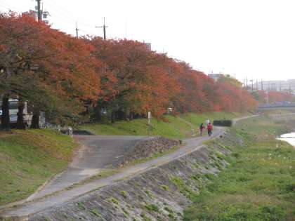 9月半ばまで猛暑であんなに暑かったのに,急に気温が下がり高野川沿いでは紅葉が見られるようになってきました。