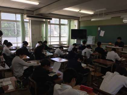 テスト1週間前に入り、5月12日(土)9:00〜11:00に土曜学習を実施しました。学年ごとに分かれ、各自で課題を用意し、静かに学習をしていました。教員も参加し、アドバイスするなど有意義な時間となったと思います。83名の参加があり、特に1年生の参加が多かったです。今後も実施しますので、是非参加してください。