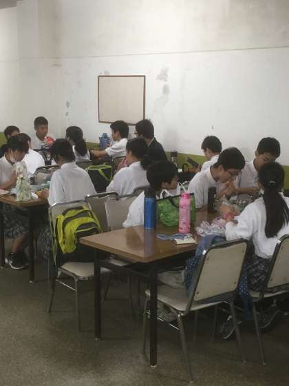 各班ごとに学校訪問をして、学習後昼食をとっています。学食の施設を使わせてもらっているようです。