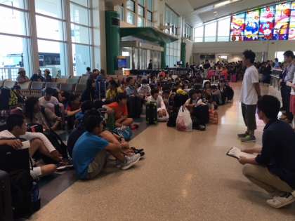 那覇空港に集合し、解団式が行われました。沖縄での様々な体験や感動を胸にいよいよ帰ってきます。