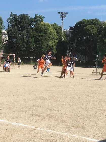写真はハンドボール女子です。対深草中学校戦です。一時は3点差をつけられる苦しい展開でしたが、最後は、地力に勝る下鴨中学校が14−8で勝利しました。