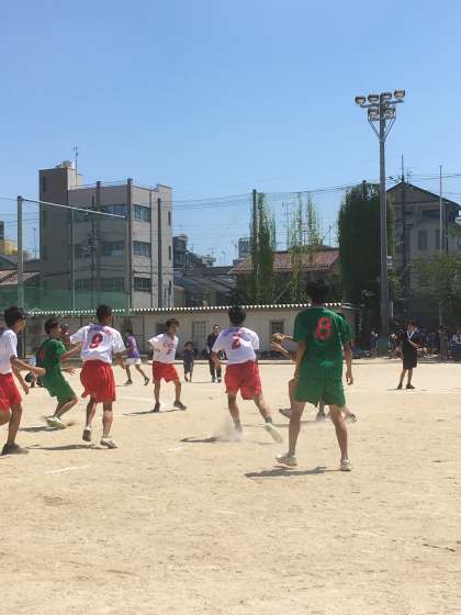 女子に続き、男子も今日が初戦です。対松尾中学校と対戦しました。一進一退の攻防を繰り広げました、しかし、一歩及ばず、16−19で敗れてしましました。しかしながら、リーグ戦です。切り替えて次戦に全力を注いでください。顧問の先生のお言葉では、3年生がいつも以上にがんばってくれたと手応えを感じておられたようです。