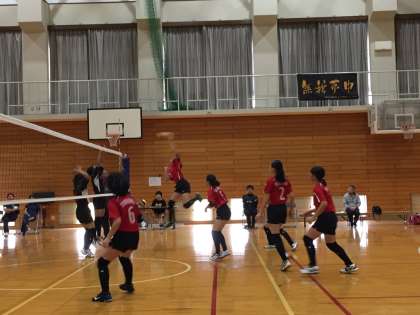 第2試合は強豪の花山中と対戦しました。攻撃力は,下鴨中が勝っていました。しかしながら,バレーボールの基本であるつなぎの差が出たのか,中盤で離されてしまい,0ー2で負けてしまいました。