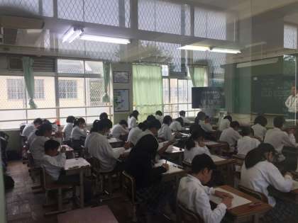 朝から予習シートで勉強をしている生徒や友達同士で問題を出し合って勉強をしている生徒もいました。定期テストとは,また違う雰囲気ですが,最後まで自分の力を出し切れたでしょうか。結果が返ってきたら,しっかり見直しをしましょう。