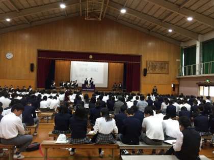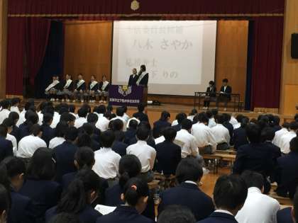 23日(火)5・6限,生徒会執行委員選挙立会演説会が行われました。各候補者が,下鴨中学校をよりよくしていこうとする意気込みや決意,熱い思いを語ってくれました。どの候補者も,堂々とした演説でした。