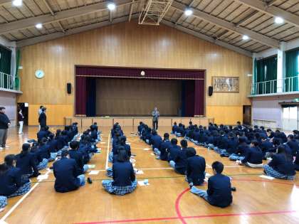 2年生は,5日(月)〜8日(木)の4日間の日程で,生き方探究チャレンジ体験を行います。それに先立ち,激励会を体育館で行いました。