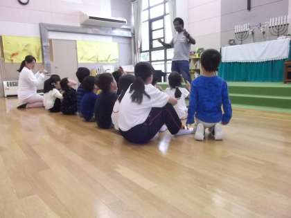英語学習の様子です。小学校入学前から英語学習を取り入れているところもあるようです。