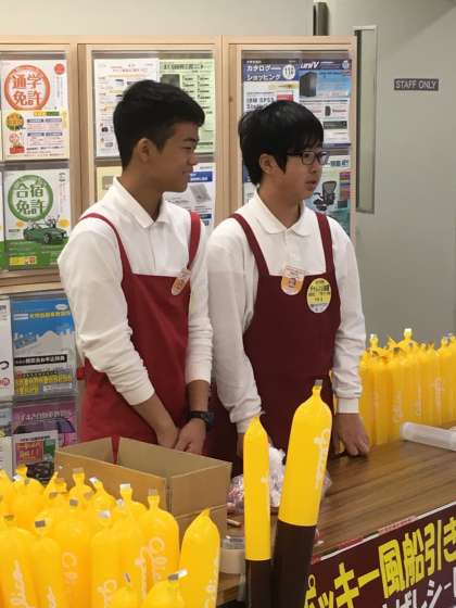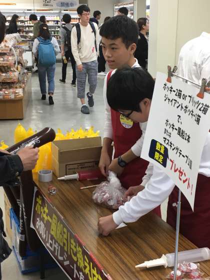 大学生協でキャンペーン商品のPRと販売をさせていただいています。学生さんたちの注目度も高く、売り込みにも熱が入っていました。
