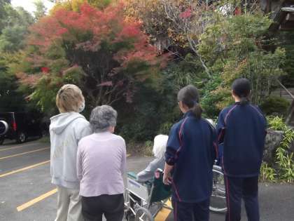 利用者さんの車いすを押しながら、病院の敷地内の紅葉を見に行きまし