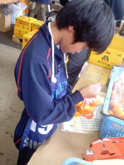 写真は,じゃがいもの個数を数えての袋詰め,みかんの袋詰めとシーラーで封をすること,三度豆の上下をまちがえずに入れる作業などです。