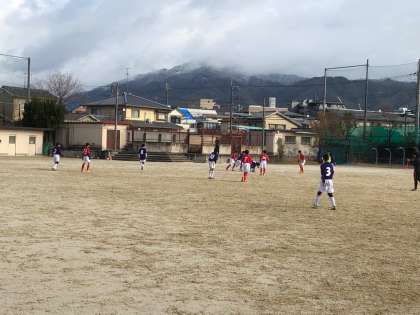 学校から見える比叡山も雪化粧をしている中,寒さにも負けず,部活動を頑張っています。グラウンドでは,サッカー部が練習試合をしていました。冬の練習を乗り越えて,春の大会での活躍を期待しています。