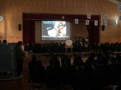 「3年生を送る会」の様子です。「3年間思い出ビデオ」です。