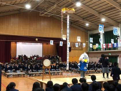 くす玉披露とプレゼント贈呈です。コサージュもきれいにできています。