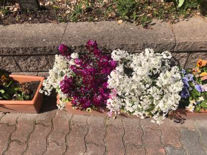 寒い冬の間に,1組生徒が土を掘り栄養を与え,新しい重たい土の袋をラグビー部員が運んでくれ,たくさんの種を先生方や生徒達で協働して植えたチューリップやプランターの色とりどりの花々が,とてもきれいに下鴨中学校の校門を彩ってくれています。
