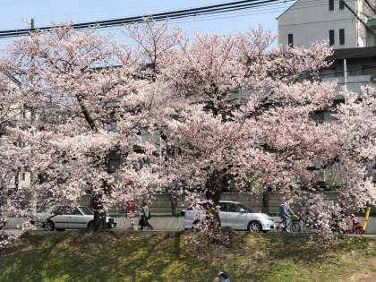 *蓼倉橋付近より撮影致しました美しい桜です。明日の入学式は,校内の見事な桜が新入生を迎えます。