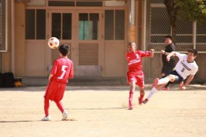 後半に入ると,相手チームに攻め込まれる時間が増え,苦しい展開となりました。しかしながら,ゴールキーパーが好セーブを連発するなど,全員で相手の激しい攻撃をしのぎました。そして,後半終了間際に,ミドルシュートが決まり,見事2−1で勝利しました。最後まで全力でプレーしたことが,勝利につながったのだと思います。
