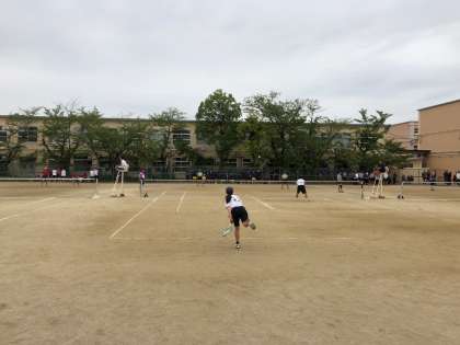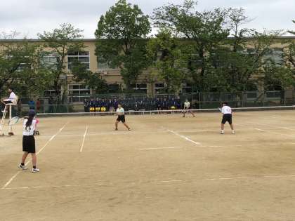 29日(月),桂中学校で団体戦1回戦を行いました。3ペアが出場しました。出場する選手と応援が一体となって,最後まであきらめずボールを追いかけている姿がとても感動しました。残念ながら敗れてしまいましたが,夏季大会に向けて,練習に励んでください。