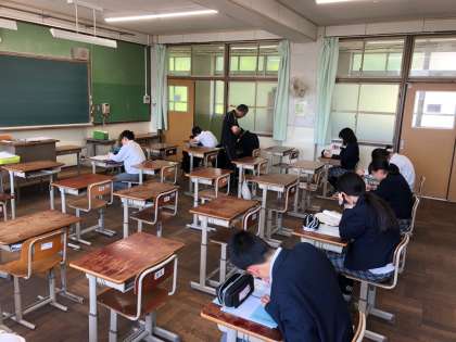 5月16・17日に行われる1学期中間テストに備えて,土曜学習を実施しました。3学年で78名の生徒が参加しました。参加している生徒は,各自で課題を用意し,自学自習の形で集中して学習していました。