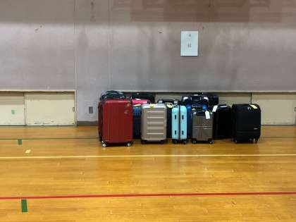 早朝より,3年生は,大きな荷物を持って,登校してきました。修学旅行での荷物の持ち運びを楽にして,利便性を図るために,事前に現地へ大きな荷物は送ることになりました。