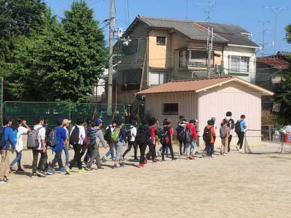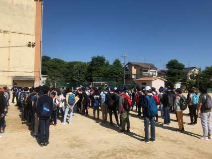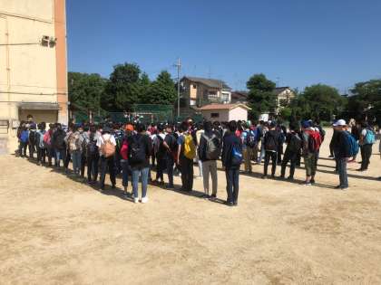 晴天の下,1年生は,校外学習へ出発しました。滋賀県のビラデスト今津で飯盒炊爨をします。ルールを守り,楽しく安全に活動してください。そして,おいしいカレーを作って,親睦を深め,クラスの力を高める一日にしてください。
