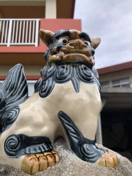 民家での様子です。シーサーも庭先に置かれています