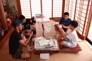 民家での様子です。買い物に連れて行ってもらっているようです。