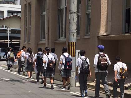 移動の際にも,交通ルールを守り,並んで歩いています。感心します。