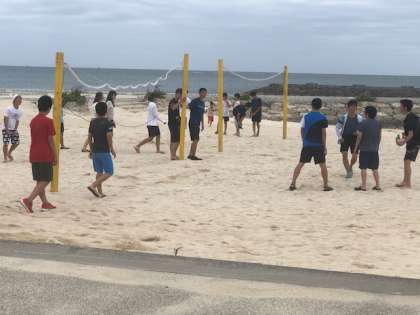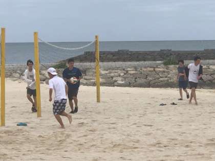 ビーチレクが始まりました。砂浜でビーチバレーをしたり,海での自由遊泳をしたりして,沖縄の海を満喫しているようです。
