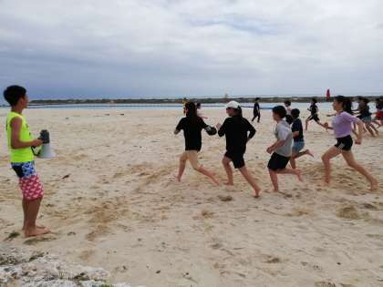 次の種目はジャングルゴリラで ゴリラに触られないようにすり抜けていきます。 ゴリラに触られるとゴリラになります。そうしてだんだんゴリラの数が増えていきます。
