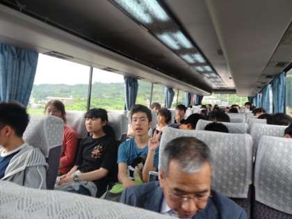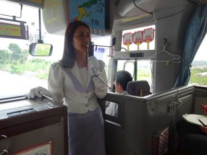 国際通りに向かうバスの車内です。到着までは,ガイドさんが,沖縄の話をしてくださっているようです。
