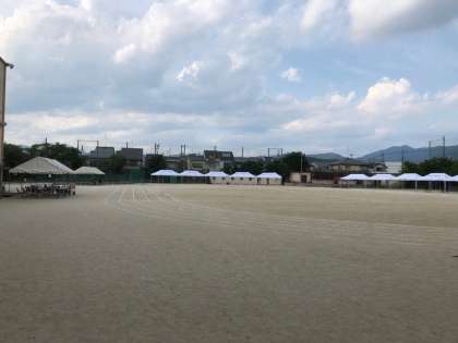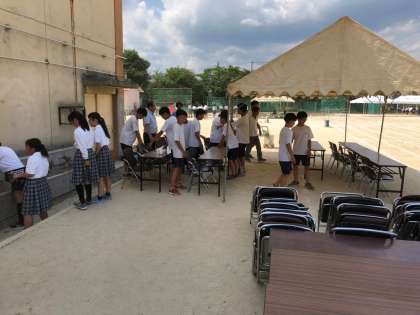 体育大会を明日に控え,午後から体育大会の会場準備をしました。暑さの中,準備にあたっている部活に所属している生徒の皆さんが,教職員とともにグラウンド整備,ライン引き,道具の準備等をしてくれました。