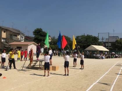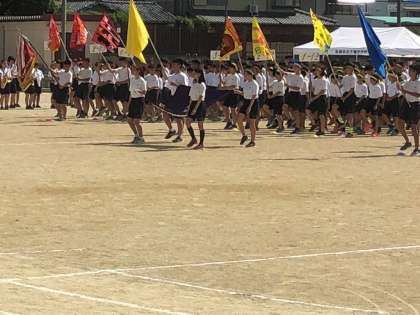 全体での行進と選手宣誓です。ただいま,100M走を行っています。