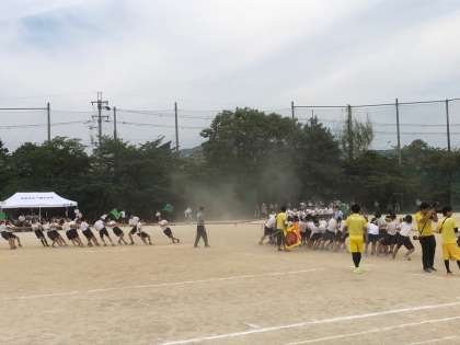 3年生団体種目の「3連綱引き」です。3方向から綱を引き合います。5分近くの熱戦もありました。