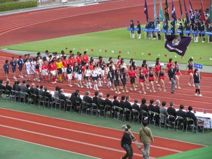 4月29日(金・昭和の日)午前10時から、西京極陸上競技場で第53回京都市中学校春季総合体育大会の開会式が行なわれ、下鴨中学校から85名、京都市全体で約7000名の選手たちが入場行進を行ないました。