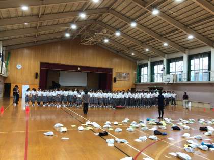 今日は,1年生が体育館で学年合唱の練習を行いました。合唱コンクールの会場は,コンサートホールなので,雰囲気は違うかもしれませんが,全体が整列すると迫力があります。声は出てきましたが,ハーモニーを整えたり,細かなところもこれから仕上げていくところかなといった感じです。