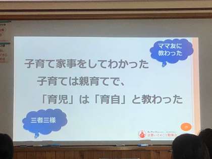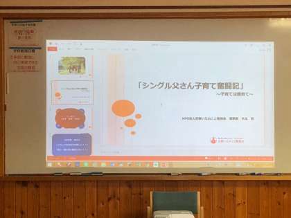 奥様をご病気で亡くされ,シングルファーザーとなってからの仕事・育児・家事に奮闘されたご経験をもとに笑いあり,涙ありのあっという間の90分でした。特に,最後の手紙のシーンでは参加者の目頭が熱くなりました。