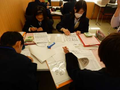 各ブースで情報収集し,それを整理しているところです。整理した情報をもとに生活設計をし,それを入力しているところです。