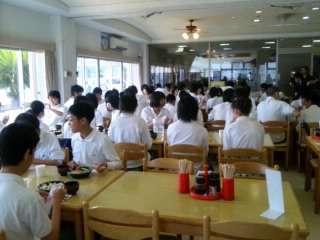 早い生徒は食べ終わっていますが、全員がそろったら、大浜海岸へ移動の予定です。