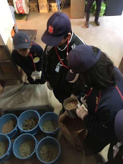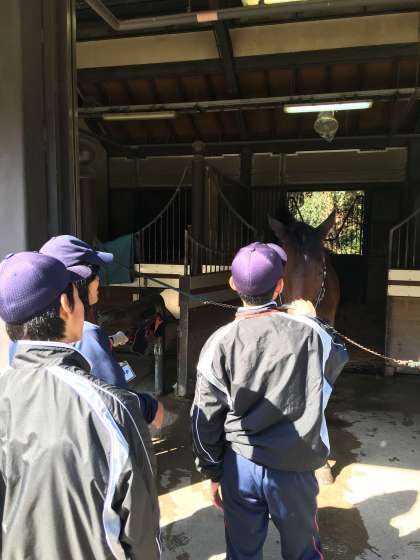 平安騎馬隊の施設での活動です。飼料の準備や実際に馬に触れさせていただいたり,訓練の様子を見学したりしました。馬の姿に戸惑いながらも,興味深い体験になったようです。