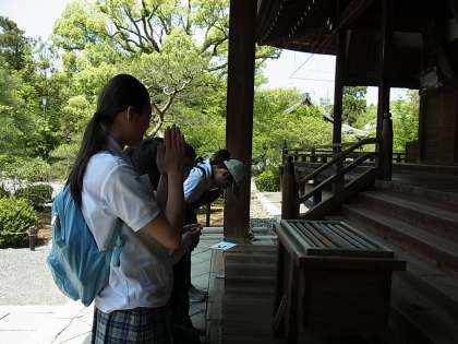 事前学習のようす やっと目的地に到着 合掌してお参り