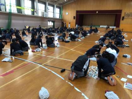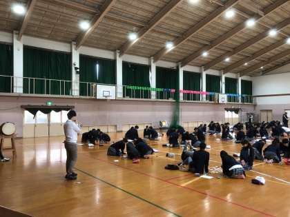 3・4限に新春百人一首大会1年生の部が体育館で行われました。寒い館内なので,ストーブをつけての開催となりました。司会進行も生徒が行い,学校長のあいさつの後,大会がスタートしました。