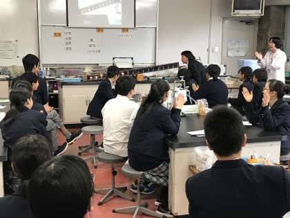 学習の様子です。化学分野の「目には見えない気体の世界」というテーマで学習しています。